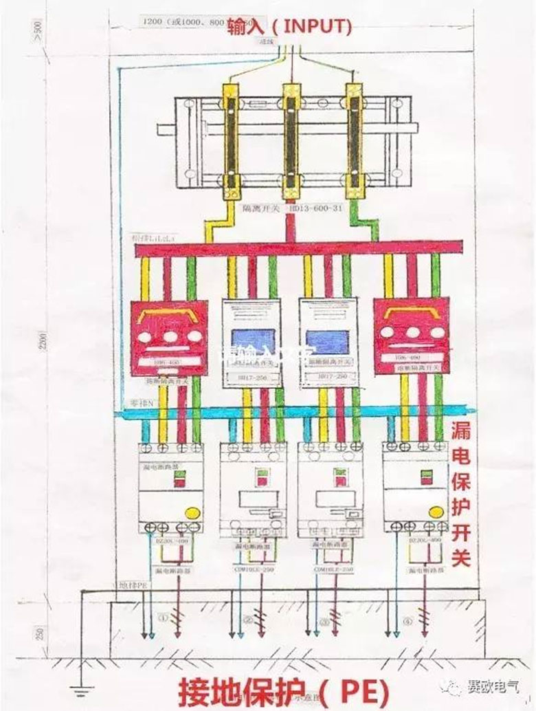 4、安裝時必須嚴格區分中性線和保護線, 三極四線式或四極式漏電保護器的中性線應接入漏電保護器。經過漏電保護器的中性線不得作為保護線,不得重復接地或接設備外漏可導電部分。 保護線不得接入漏電保護裝置。
